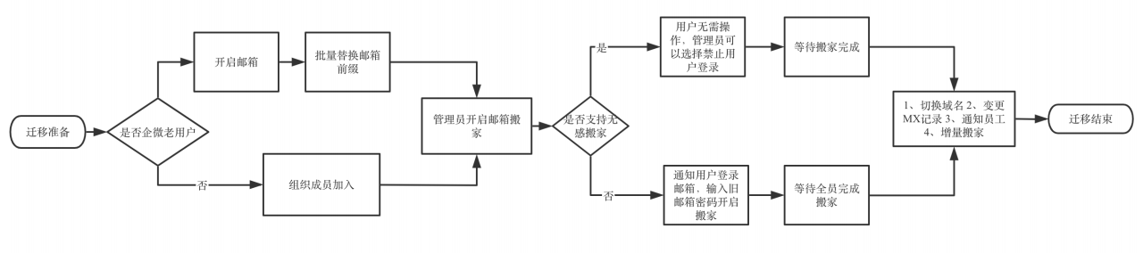 支持邮件群组、邮件撤回、日历和会议邀请等邮箱功能,以及邮件搬家、审批、备份和归档等管理功能。