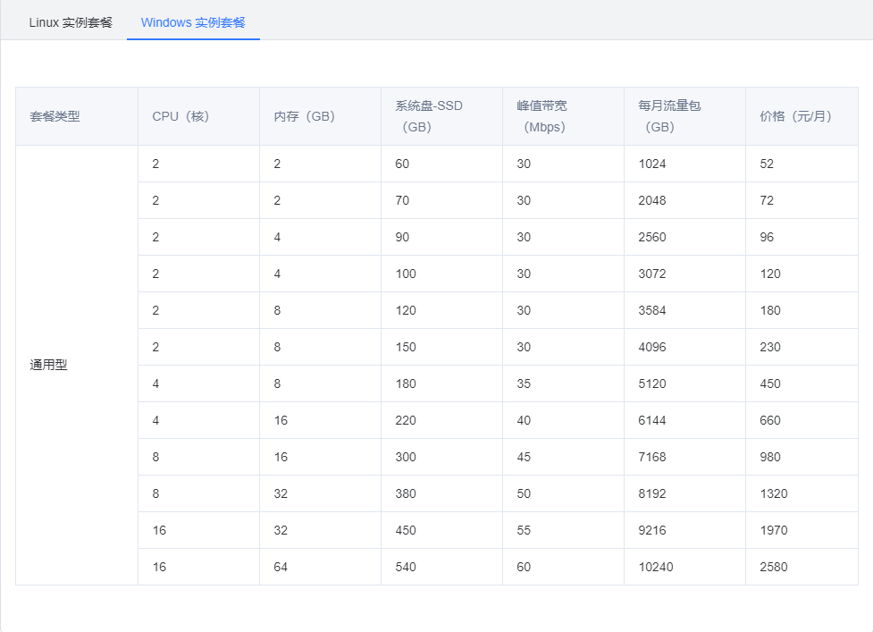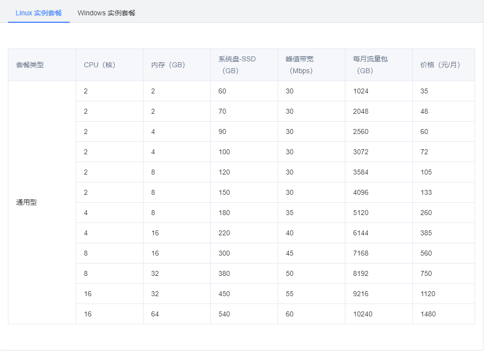 海外地域通用型实例套餐最终将更新为以下套餐: